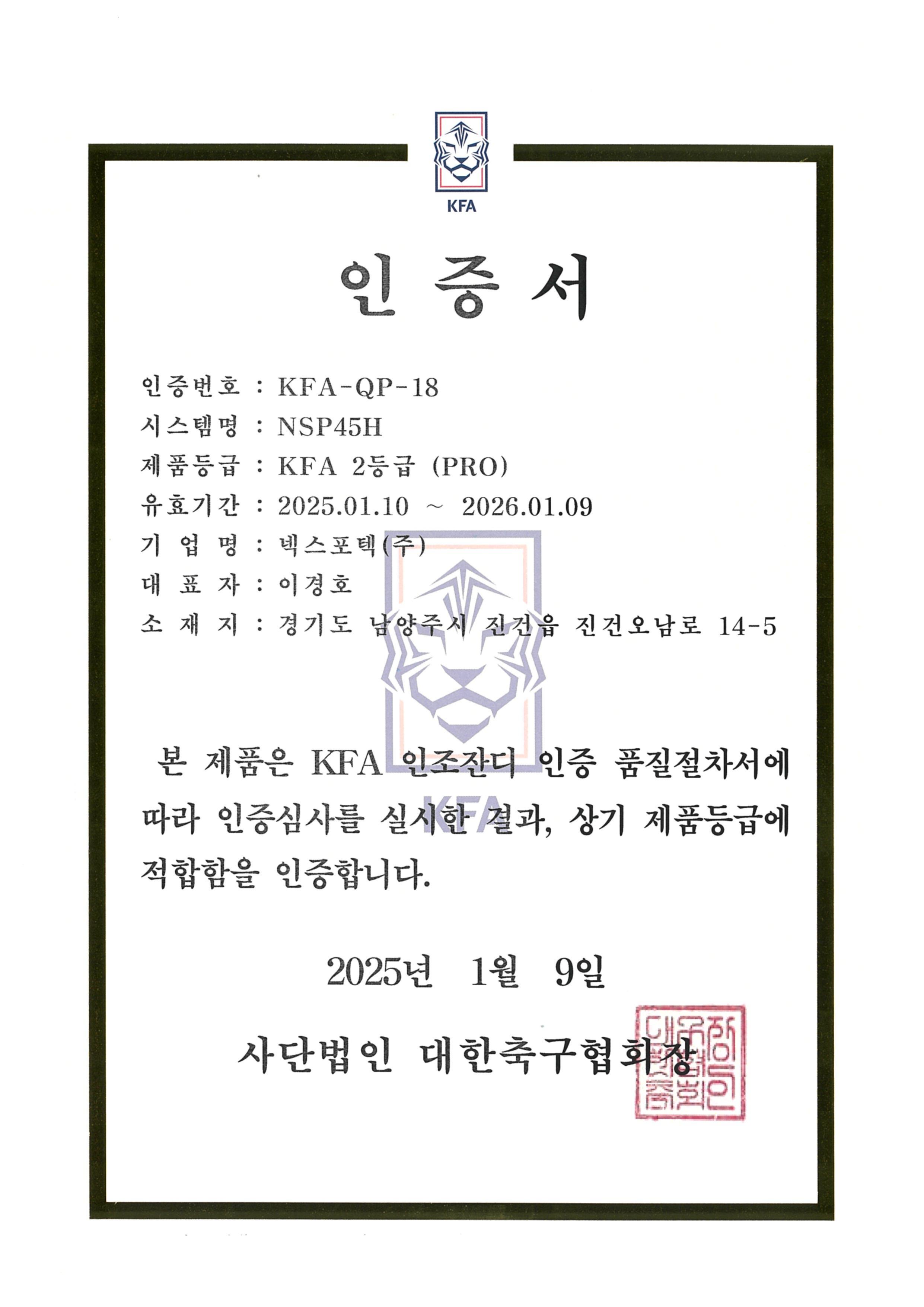 KFA 2등급 인증서